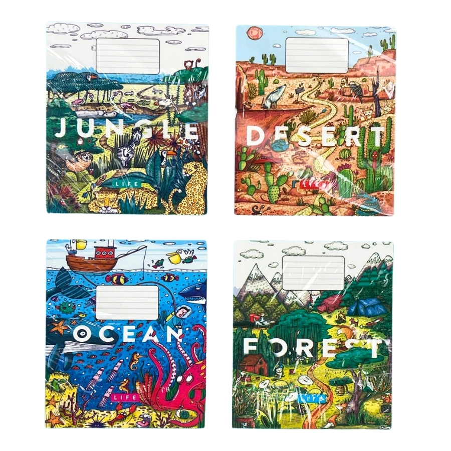 Зошит, 12 аркушів, коса лінія, з додатковою лінією, "Намальований світ", Тетрада