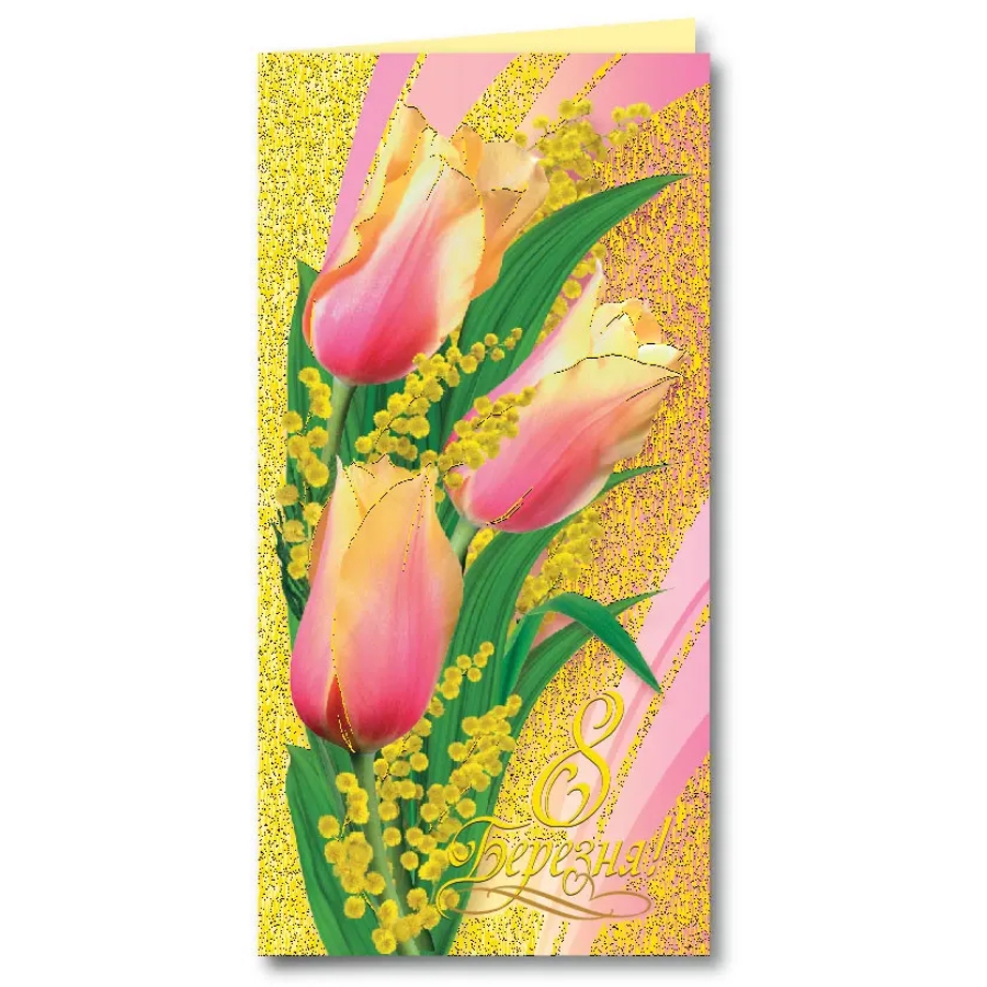 Листівка, 10х20 см, євроформат, україномовна, "8 Березня", Фолио+