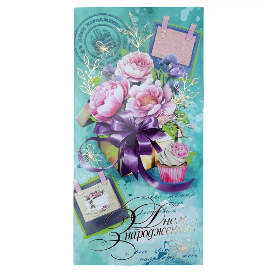Листівка вітальна, 20х10 см, євроформат, "З днем народження" Фолио+